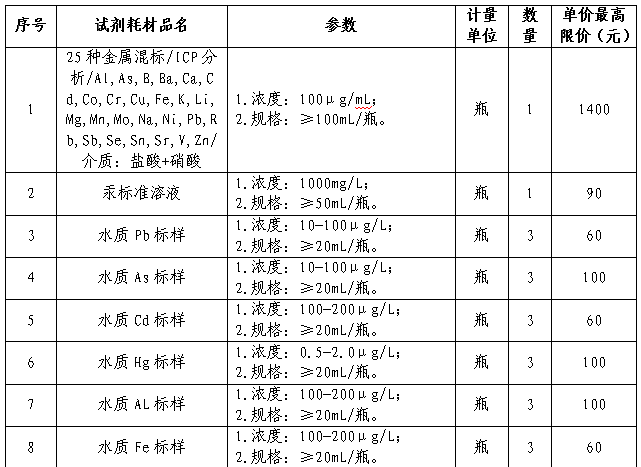 1.项目名称:许昌市疾病预防控制中心2026年水质检测(常规指标)试剂耗材采购项目。