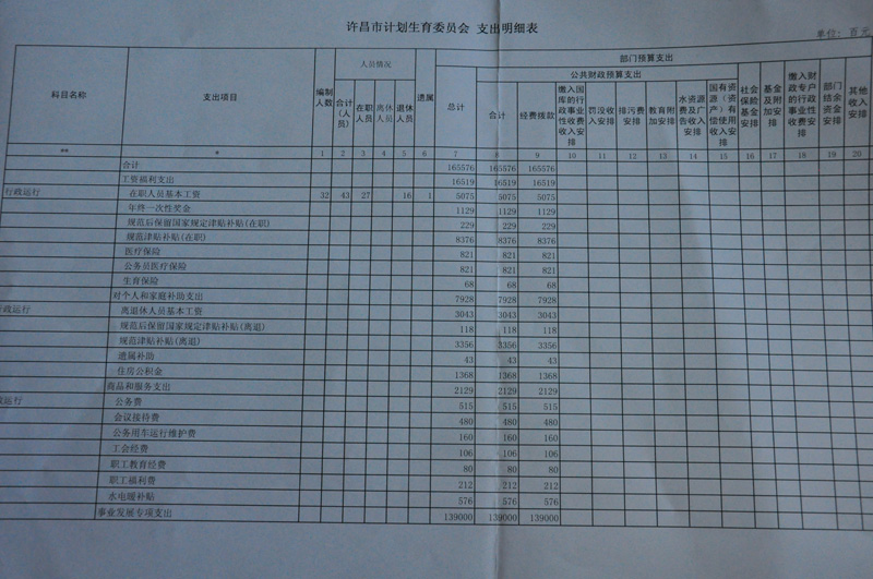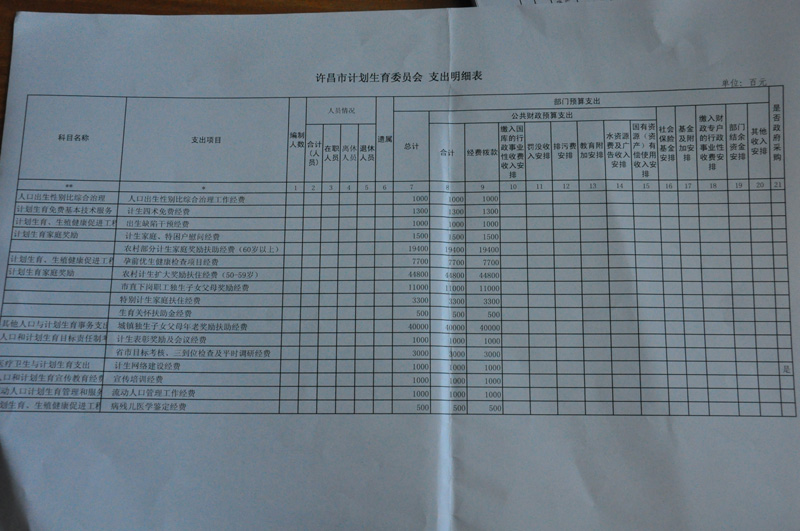 许昌市计生委三公经费公示